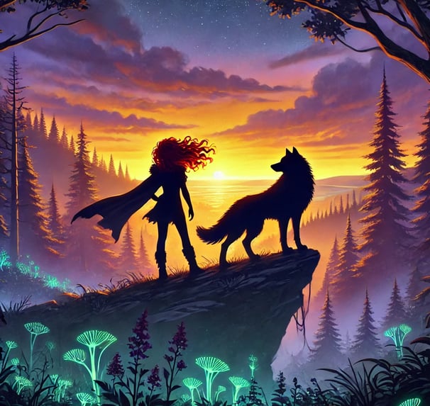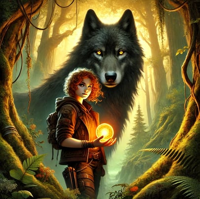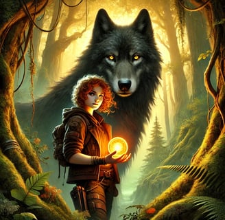 Tala’s closest companion is Kairos, her black wolf with glowing amber eyes. Their connection goes beyond simple loyalty — there’s something deeper, something almost otherworldly about their bond. He’s her protector, her shadow, and, in many ways, a mirror to her own wild spirit.